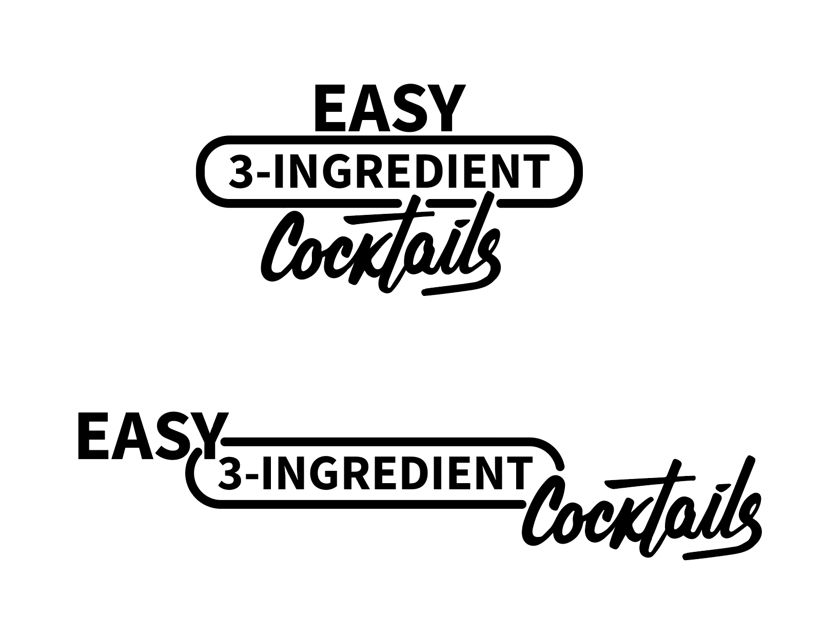 The logo nods to neon cocktail-bar signage, pairing a bold stacked wordmark with a rounded “3-INGREDIENT” badge and a flowing script for hand-lettered, after-hours energy.